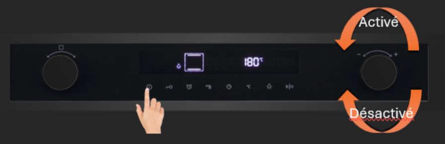 - Version du logiciel supérieure à 2.25: appuyez successivement sur les 3 dernières touches de la séquence minuterie de cuisson, marche/arrêt, sécurité enfants.