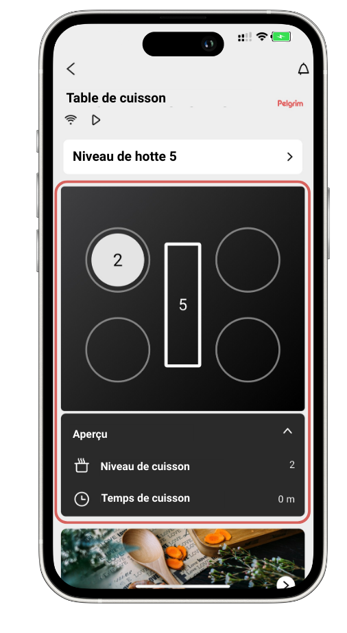 - Suivre les zones de cuisson actives et consulter les températures et niveaux actuels